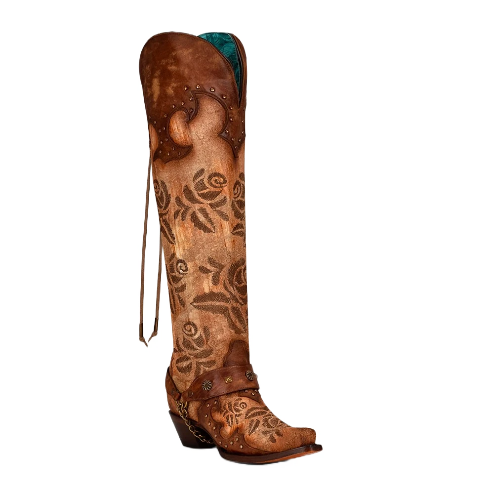 Corral Boots Corral Ladies Sand Overlay & Floral Embroidery Tall Top Boots A4209