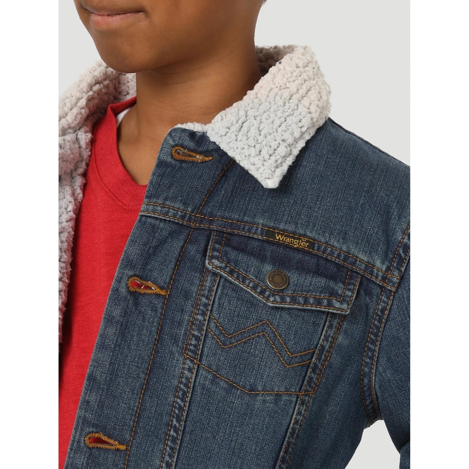 Wrangler Boy’s Western Sherpa Lined Rustic Blue Denim Jacket 84256RT